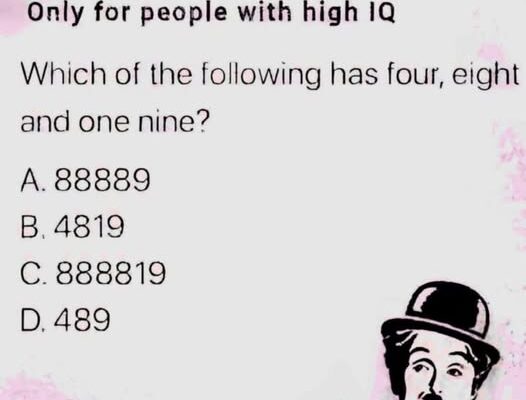 It looked like just another quick brain teaser shared in a group chat, the kind people usually glance at and forget. The bold heading claimed it was “Only for people with high IQ,” which of course made everyone stop scrolling. The question seemed straightforward: Which of the following has four, eight, and one nine? Four answer choices sat below it, each made up of familiar digits. At first glance, several options looked correct, and that’s exactly what made people second-guess themselves.